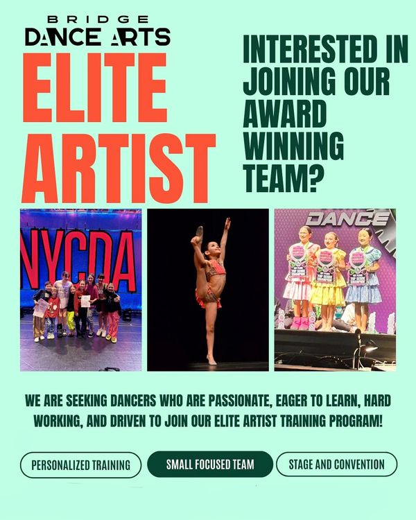 The Elite Artist program is for dancers that can't get enough of dance and want more than recreational classes. These dancers train weekly in all age appropriate styles. They learn dances early in the season and attend 3-5 competitions throughout the season. Elite Artists also travel to conventions to learn from the leading teachers in the industry.